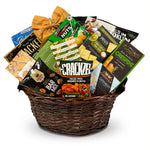 Simply salty, simply the best! Perfect for that salty tooth in your life, this basket has a flair for everything savoury and gourmet. For those who prefer salty over sweet, our tastemakers have expertly paired salty treats- breadsticks, crackers, chips, and nuts- with plenty to dip into. Creamy cheese and olives are also included for maximum snackage. Salt-lovers rejoice!